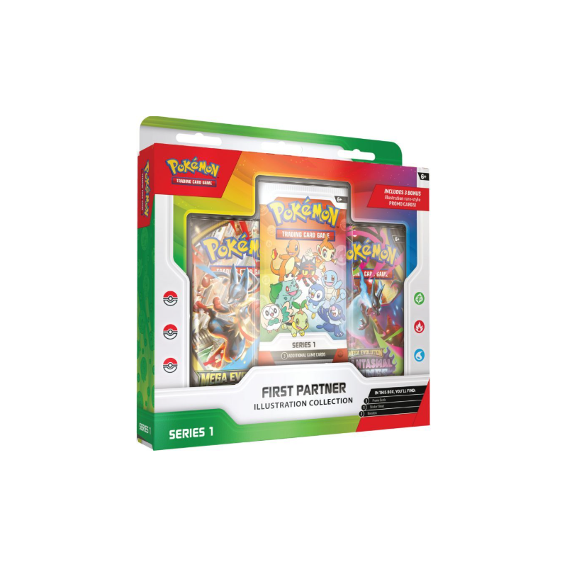 Przygoda każdego trenera rozpoczyna się od wyboru pierwszego Pokémona - wiernego towarzysza, który będzie zawsze obok, na dobre i na złe! Teraz możesz powrócić do tych wspomnień i uczcić tę wyjątkową więź ze swoim stworkiem dzięki zestawowi Pokémon TCG: First Partner - Illustration Collection pełnemu nostalgii i radości!