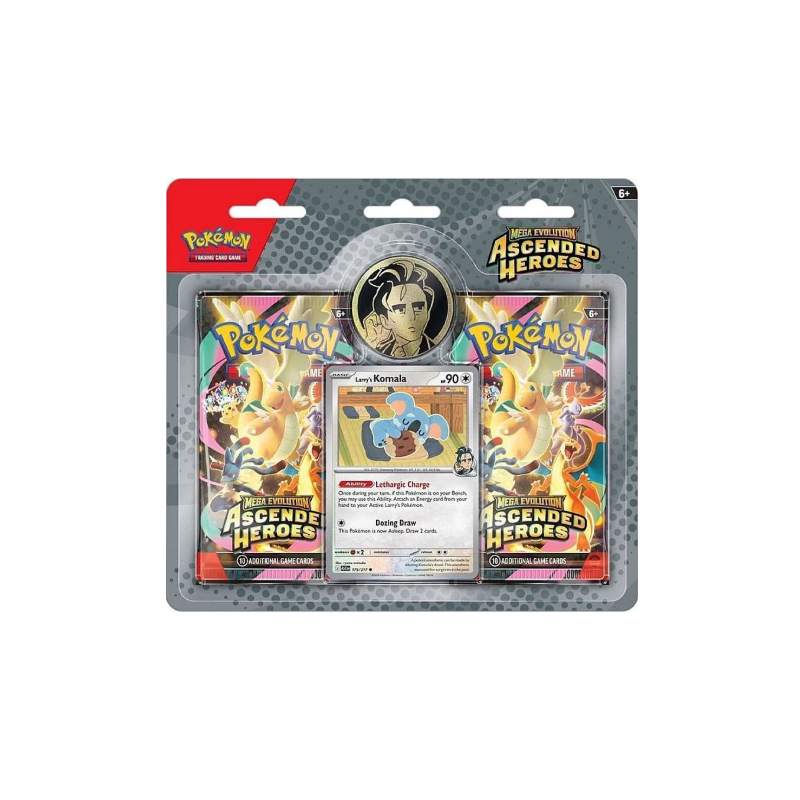 Odwiedzający miasto Medali w regionie Paldea mają okazję stanąć do walki z Larrym i jego Pokémonami typu Normal. W tym zestawie znajdziesz kartę promocyjną "Larry’s Komala", metaliczny żeton z wizerunkiem Gym Leadera oraz dwa boostery z dodatku Pokémon TCG: Mega Evolution - Ascended Heroes. Zawartość zestawu: - 1 karta promo - 2 boostery - moneta