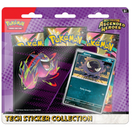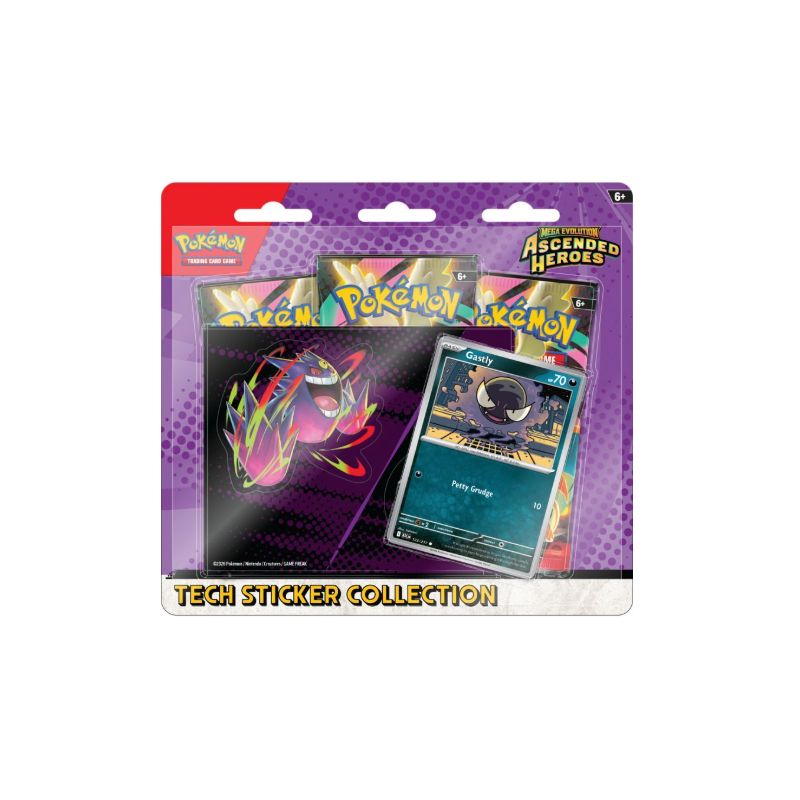 Pokémony z regionu Kanto wznoszą się na wyżyny - i prezentują swoją potęgę w formie kart promo, jak i uroczych naklejek! W tym zestawie znajdziesz Gastly’ego jako połyskującą kartę promo foil, a także arkusz naklejek tech stickers z Gastlym i Mega Gengarem. A na koniec - jeszcze więcej Pokémonów w trzech boosterach ze specjalnego dodatku Pokémon TCG: Mega Evolution - Ascended Heroes!