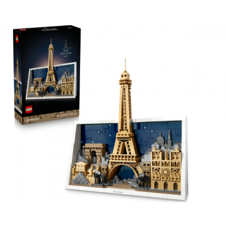 Pokaż swoją miłość do Paryża dzięki temu kolekcjonerskiemu zestawowi Na początek stwórz gwiaździste niebo i zarys panoramy miasta. Zbuduj Łuk Triumfalny, katedrę Notre-Dame, Luwr i Wieżę Eiffla, która wystaje poza granice ramki. Dodaj ostatnie szlify, aby uzupełnić panoramę miasta, czyli klocek z napisem \"City of Love\" (\"Miasto miłości\") i minimalistyczną ramkę.Kolekcjonerski zestaw architektoniczny LEGO — zestaw konstrukcyjny dla dorosłych miłośników architektury, który sprawdzi się jako dekoracja do salonu, domu lub biuraOdkryj Paryż w najdrobniejszych szczegółach — szczegółowy zestaw LEGO Paryż — miasto miłości zawiera cztery ikony architektury Paryża na tle miasta i rozgwieżdżonego nieba, otoczone ramką z białych klockówPomysł na prezent dla dorosłych — ten szczegółowy zestaw architektoniczny jest idealny dla miłośników podróży i historii, entuzjastów Paryża lub kolekcjonerów LEGO. To również ciekawy wybór na prezent urodzinowy lub świątecznyZestawy LEGO Architecture — ten model z kolekcji LEGO Architecture należy do serii zestawów klocków LEGO dla dorosłych (sprzedawanych osobno), które zostały stworzone z myślą o kreatywnej rozrywceDekoracja ścienna do zbudowania — kultowe zabytki Paryża z klocków LEGO: Wieża Eiffla, katedra Notre-Dame, Łuk Triumfalny i Luwr na tle rozgwieżdżonego miasta w ramce, którą można powiesić lub postawić na półceZestaw konstrukcyjny i ozdoba do domu — zestaw umożliwia zbudowanie modelu miasta w ramce, do którego można dodać klocek z napisem \"City of Love\" i wyeksponować całość jako dekorację na ścianie lub półcePowiększ kolekcję — dzięki aplikacji LEGO Builder możesz budować modele, korzystając z instrukcji 3D, śledzić swoje postępy i zapisywać wszystkie zestawy konstrukcyjne w aplikacji