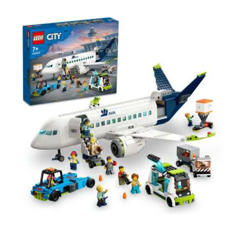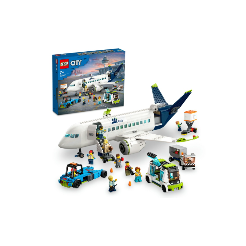 Oto gratka dla fanów modeli samolotów. Zestaw LEGO® City Samolot pasażerski (60367) dla siedmiolatków i starszych dzieci jest pełen realistycznych elementów i funkcji. Elegancki statek powietrzny ma szczegółowe wnętrze z kokpitem, fotelami, przejściem i toaletą, a także jest wyposażony w schody, autobus lotniskowy, holownik, furgonetkę cateringową i furgonetkę z bagażami oraz dziewięć minifigurek zachęcających do zabawy.
