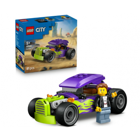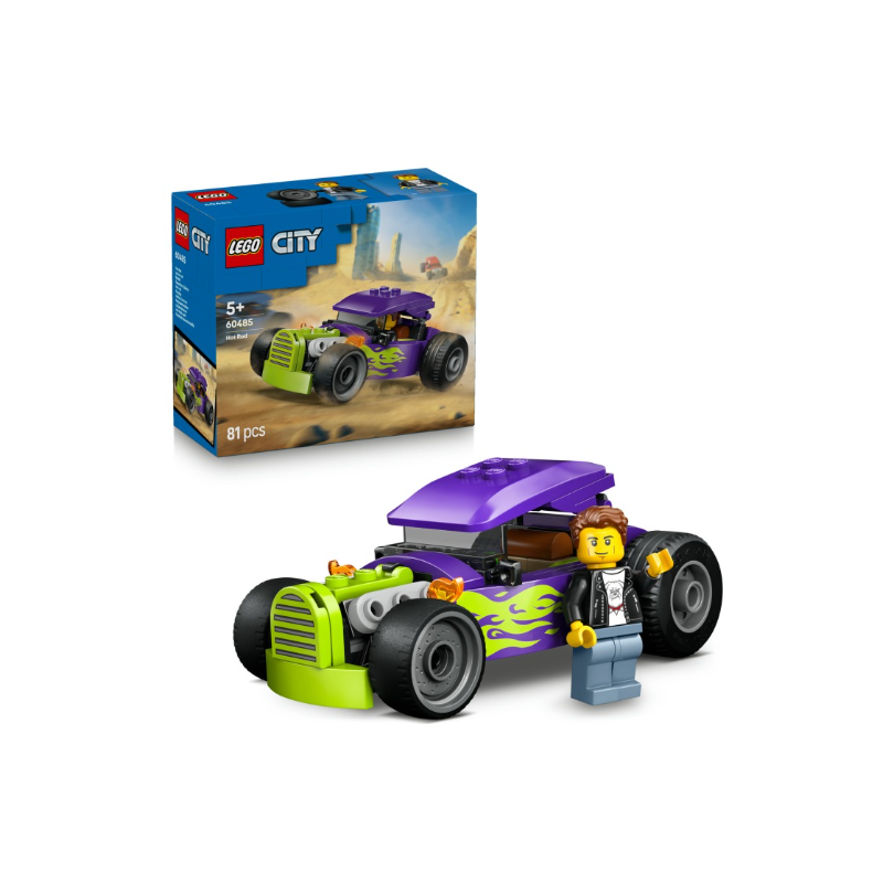 Mali miłośnicy samochodów wyścigowych od 5 lat mogą wyruszyć na superszybkie wyścigi z samochodzikiem LEGO® City Hot rod (60485). Ten zestaw samochodowy zachwyci małych budowniczych dzięki wyrafinowanym elementom wyścigowym, w tym ogromnym tylnym oponom, kokpitowi kierowcy z podnoszonym dachem i wspaniałemu fioletowemu kolorowi z neonowymi zielonymi płomieniami. Wystarczy dodać minifigurkę kierowcy, aby rozpocząć superszybką jazdę!