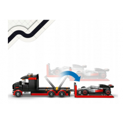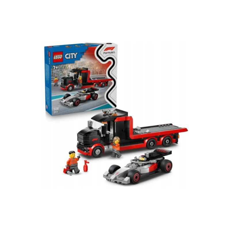 Fani wyścigów w wieku od siedmiu lat mogą cieszyć się epicką akcją dzięki zestawowi LEGO® City F1® Ciężarówka F1® z bolidem Audi F1® (60493). Ten wysokiej jakości zestaw z pojazdami zawiera autentyczny model bolidu Audi F1® z gumowymi oponami typu slick i szczegółowym kokpitem, a także ciężarówkę z kabiną kierowcy, schowkami, komorą silnika, sześcioma gumowymi oponami i podnośnikiem do rozładunku bolidu Audi F1® z ciężarówki na tor. Zestaw zawiera minifigurki kierowcy Audi i dwóch członków ekipy pit stopowej LEGO, a także akcesoria związane z F1, które pobudzają wyobraźnię podczas zabawy i ekspozycji.
