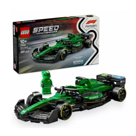 Model samochodu F1 Aston Martin Aramco ma kokpit otwierany przez podniesienie pałąka systemu halo, tylne skrzydło, zawieszenie typu wishbone, naklejki sponsorów i szersze tylne opony z napisem „Pirelli”. Zabawkowy samochód zawiera także minifigurkę kierowcy w kombinezonie Aston Martin Aramco i kasku, którego można umieścić w kokpicie i odgrywać wyścigi.