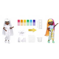 Lalka ma białe włosy i jest ubrana na biało, co stanowi idealne płótno dla różnych kombinacji kolorystycznych. Opakowanie zawiera 6 zmywalnych pudrów tęczowych w kolorach czerwonym, pomarańczowym, żółtym, zielonym, niebieskim i fioletowym. Proszki te można łatwo nakładać za pomocą dołączonej gąbki i gumek, które są przeznaczone do batiku.